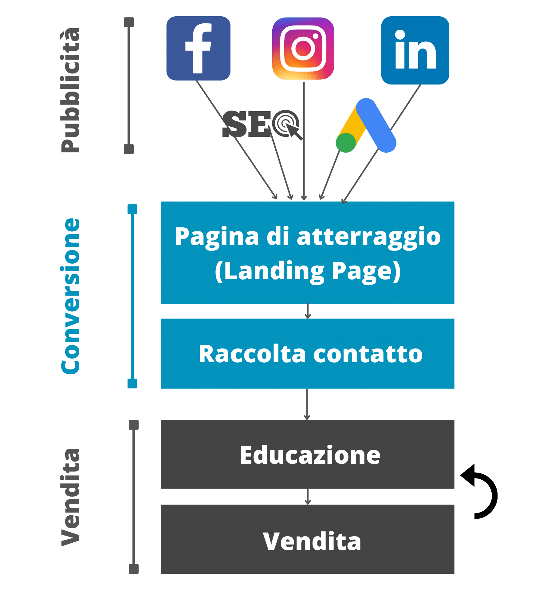 “Non serve a nulla investire tempo nella creazione di contenuti social e spendere soldi in pubblicità per ottenere like, traffico o interazioni, se poi non converti queste azioni in contatti e i contatti in clienti.”